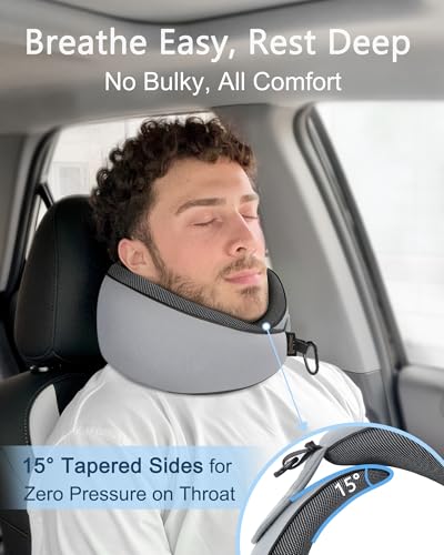 - 15° Tapered Sides for Pressure-Free Comfort: The slim, curved sides are angled at 15°, cradling the back of your neck without pressing against your throat. This contoured design offers secure, natural support even when reclined, unlike bulkier alternatives that may restrict movement.