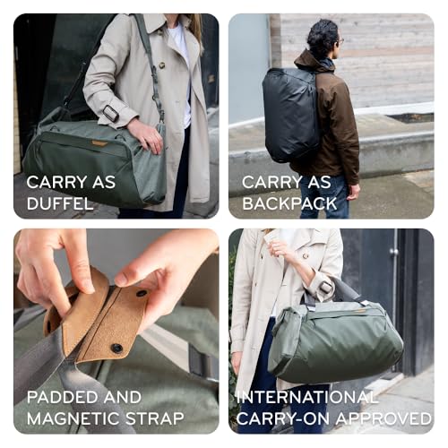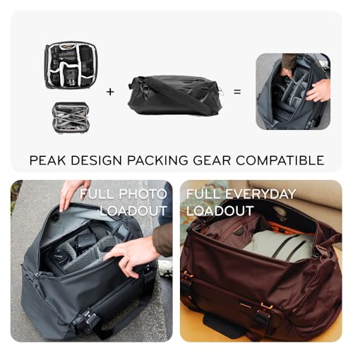 Peak Design Travel Duffel, Extra-Wide Single Zip Access, Weatherproof Shell, 4 External Pockets, Fits Packing Cubes & Camera Cubes, Ideal for Weekend Trips, Versatile Duffel Bag for Travel