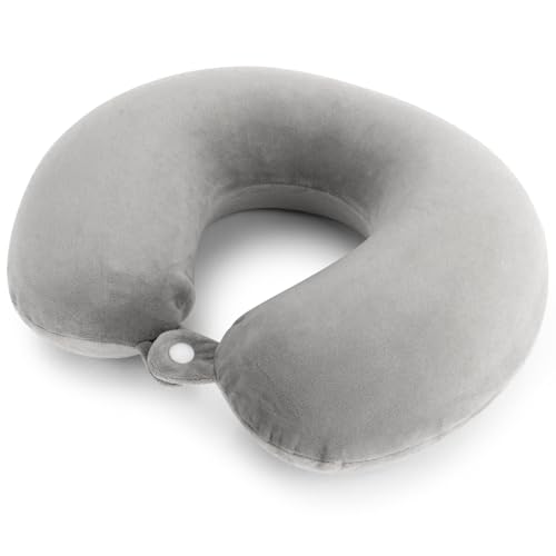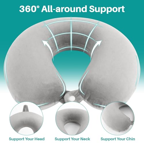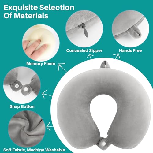 RAINFLOW Neck Pillow for Airplane Sleeping – Memory Foam Travel Pillow with Neck & Head Support, U-Shaped Design for Long Flights, Portable Adult Neck Support Pillow with Washable Cover (Grey)
